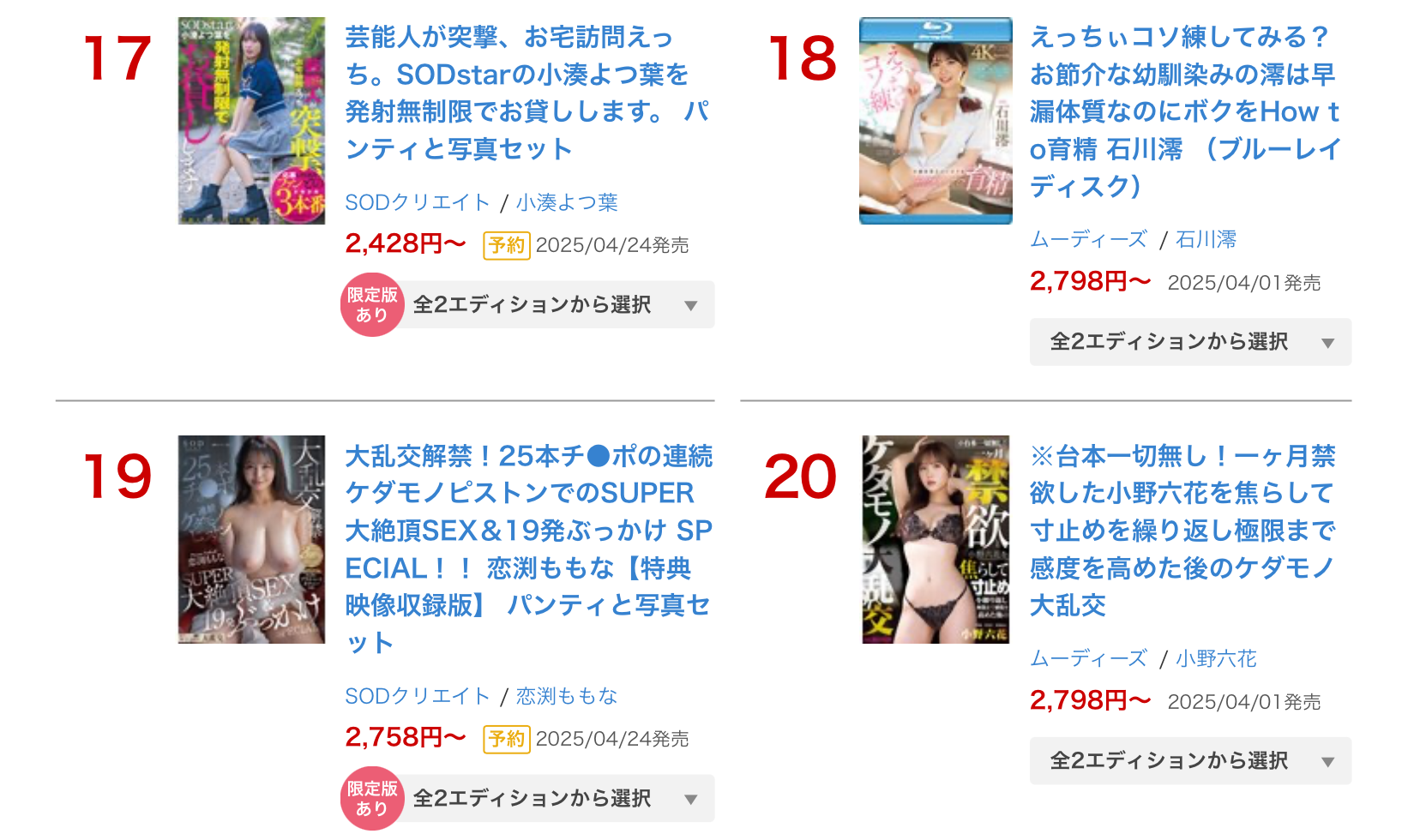 但我知道有人会觉得太扯,Tiny可以赢过可以打败S1的大乱交还有凪ひかる(凪光)、纱仓まな(纱仓真菜)以及神木丽与本庄铃的合体?我告诉你,其实Tiny的排名还不是这一次销售榜最奇怪的事,最诡异的是「石川澪」: