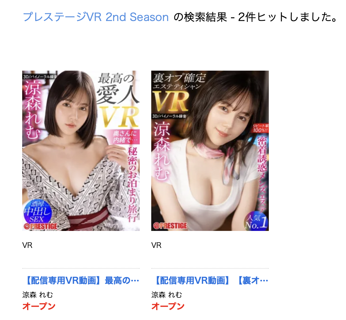 为什么?因为蚊香社(Prestige)已经很久没有发售VR片了,他们自从启动プレステージVR 2nd Season、也就是第二波拍VR的计画以来就只和凉森れむ(凉森玲梦)合作了两支作品,而且都是去年(2024)的事了ー这其实蛮有趣的是,还记得之前在台北有专门让大家看VR片的看片中心吗?当时那家店的主力就是蚊香社的作品,结果疫情后蚊香社基本上已经放弃了这一块⋯