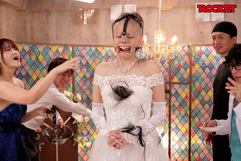 然后就是各式各样的羞辱玩法了,比方说把卫生纸塞进鼻孔做成流鼻涕的样子、比方说拿马桶盖吸住平泉栞奈的光头、比方说用丝袜罩住她的头⋯然后把她推出婚礼现场和办公室公开处刑再穿上金太郎的肚兜改名「秃太郎」,甚至连眉毛也剃掉,再加上阔嘴器以及鼻勾的使用,妈妈咪呀,平泉栞奈的牺牲也太大了吧?