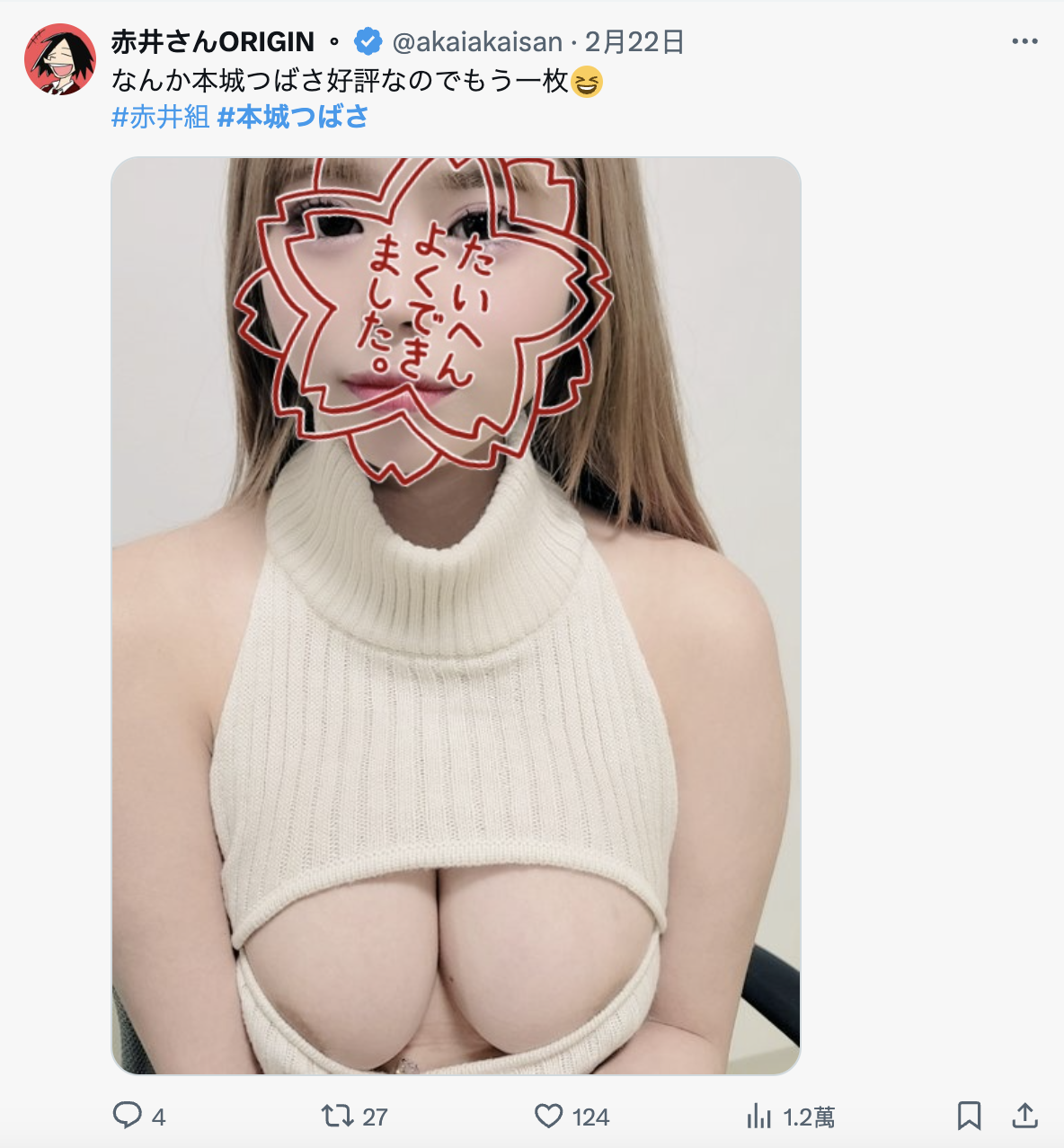 咦?我以为一样是黑皮大奶的「七海那美」也算是辣妹,不过算了,这种事片商说了算;然后你在X上搜寻本城つばさ(本城翼)就会发现经纪人「赤井」有把她出道的过程做了纪录:去年11月,她与事务所签约决定成为AV女优然后还替自己取了「本城つばさ(本城翼)」的艺名,那个时候还是黑发造型,后来,在面试过一轮后她得到了Moodyz的专属合约,造型也开始改变,然后就像大家今天看到了,她成为了金发黑皮H罩杯的辣妹: